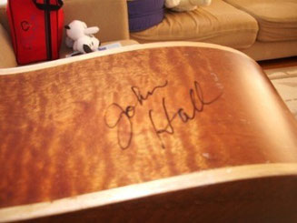 Jhon Hall が日本公演を行う時に、楽器の届くのが遅れたため、前の所有者がこのギターを貸し出し、公演後、サインを書いてもらわれたとのことです。