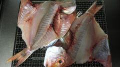 カマスの干物 魚の料理 2013.03.12 舞鶴の魚屋さんでカマスを買って帰り、干物にしてみました。 1リットルの水に塩は大さじ4杯を入れて、よくかき混ぜて2時間浸しておき、24時間干してみました。 塩加減はもう少し濃くてもいいかも。 干物具合は最高!