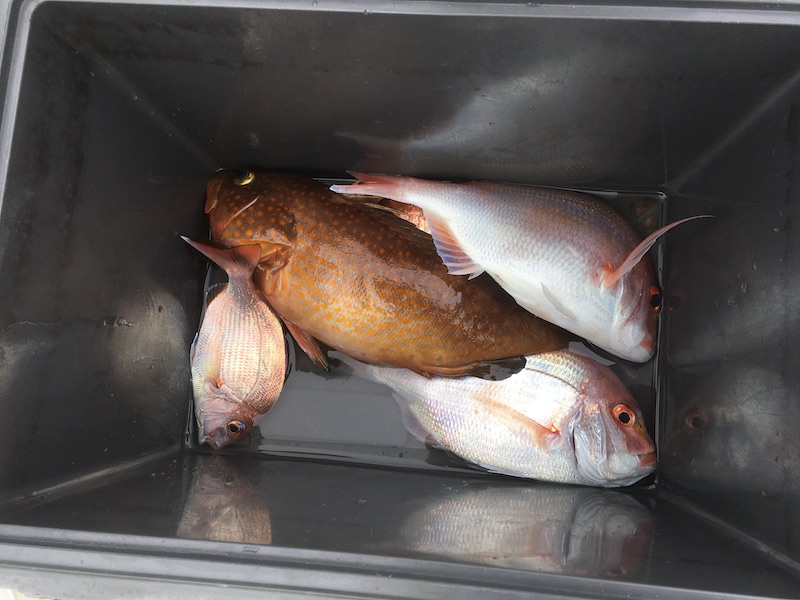 友人がレンコを釣る中、ようやくコツコツとアタリがあり、アマダイが釣れました。