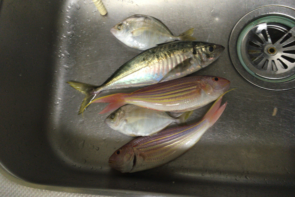 湾奥のオートキャンプ場前でやったのですが、小さいものがポロポロ釣れるだけで、私は10匹足らず、お隣さんは20匹足らずの結果となってしまいました。
