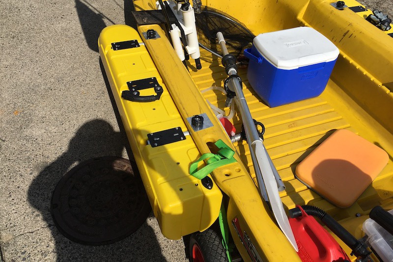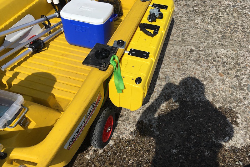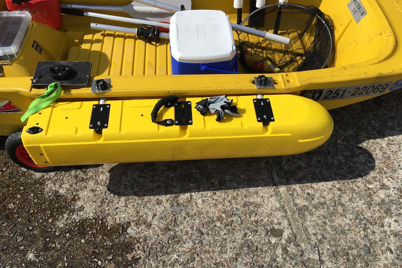 安定感は中央の方が良さそうなので、とりあえず中央に取り付けして走行し、フロートに波が当たり船内に海水が入って来ないかを見ることにしました。