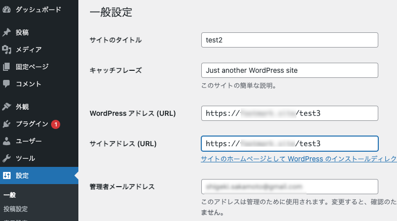 サイトアドレス(URL)も同様に変更します。