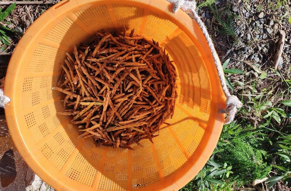 小豆の収穫(1回目) 未分類 2022.10.162023.08.27 小豆の鞘が茶色くなって収穫できるようになりました。 このまま放っておくと鞘が割れて小豆が落ちてしまいますので、2022年第1回目の収穫をしました。 まだ、鞘が茶色くなっているものは少なく効率は悪いです。 17aの田を回って画像の分だけでした。 小粒なものが多く獲れ高はあまり期待できないような気がします。 まだ青い葉も多く、花も咲いていますのでどうなることやら。