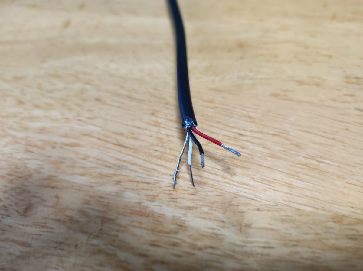 4ピン側のケーブルだけを使います。裸線、白、赤、黒の4本でした。