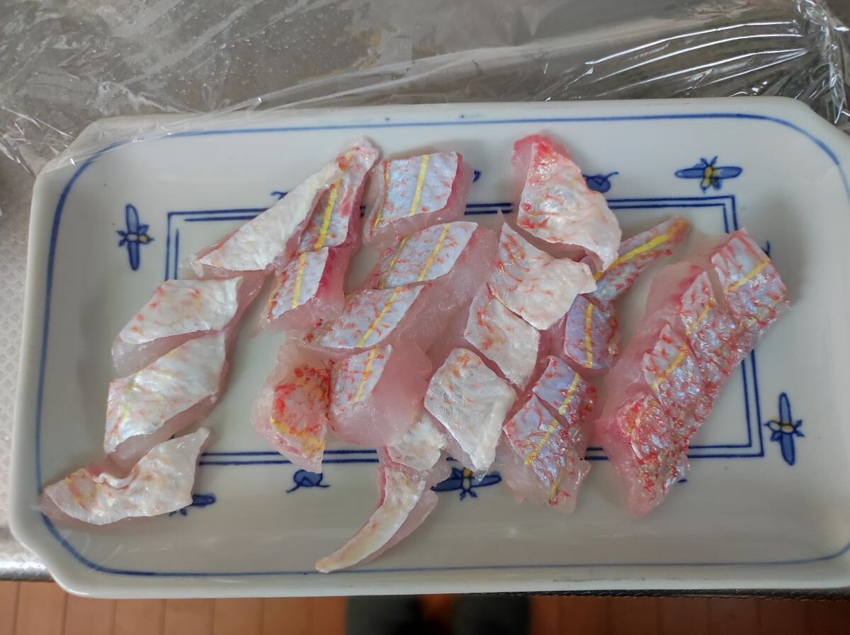 確かに皮つきの方が味があっておいしいと思うのですが、皮のくさみあり家族には不人気でしたので、次回は皮付きの湯引きにしてたべてみたいと思います。