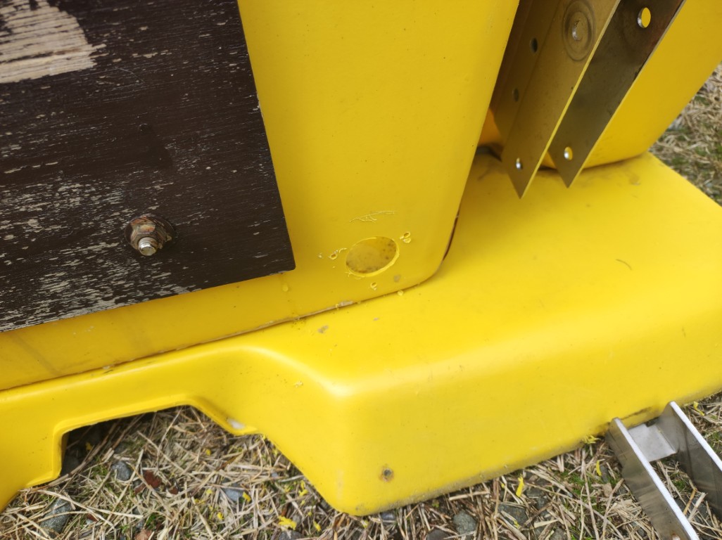 蓋は購入時からありませんでしたので、蓋兼荷物置き台として使っていた板を当分は使おうと思います。バッテリー入れにしていた時期もあり、板にケーブルの穴が開いています。