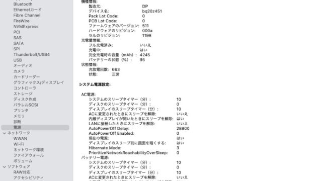 MacBook Air (11-inch, Early 2014)を使っていますが、バッテリーが少しヘタってきたように思います。 ーーでは、 バッテリーの状態(%): 97 状態情報: 充放電回数: 655 状態: 正常 となっています。 ...